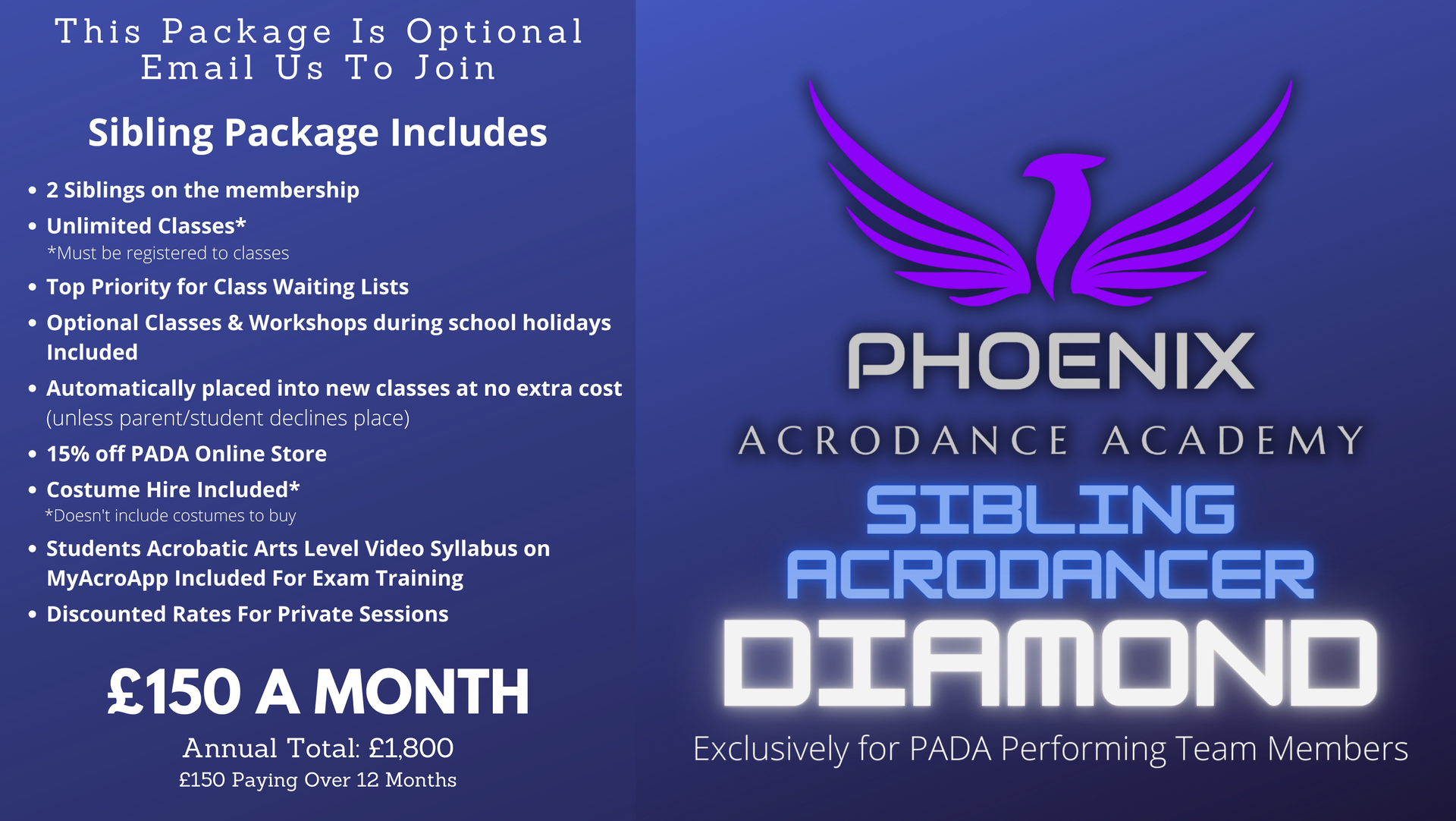 Includes: Unlimited Classes & PADA Workshops, Discount for our Online Store, Costume Hire & more.